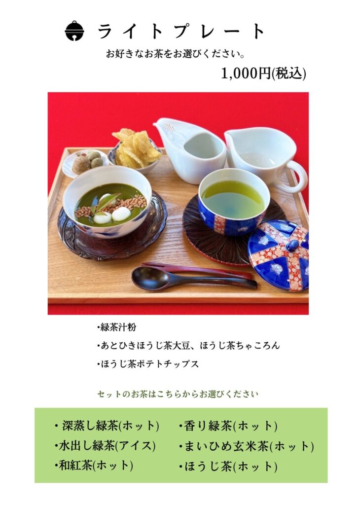 1月5日㈪は、お抹茶セット・ライトプレートのみの営業日です。