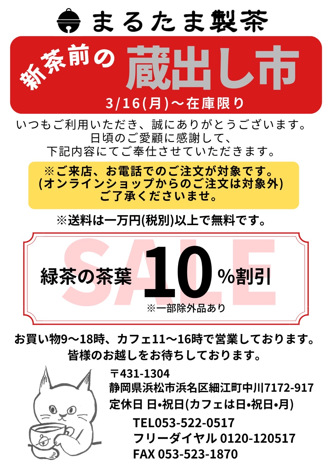 3月136日㈪から、ご来店やお電話でのご注文対象で蔵出し市を開催させていただきます。